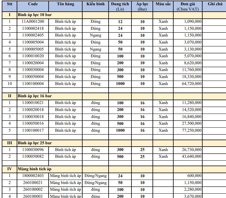 Bảng giá công bố bình tích áp Zilmet để có giá tốt hơn vui lòng liên hệ với chúng tôi