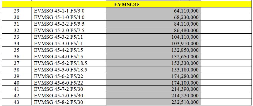 | Phase x voltage: | 1 x 230V ±10% 50Hz (≤ 2.2 kW) only for EVMS