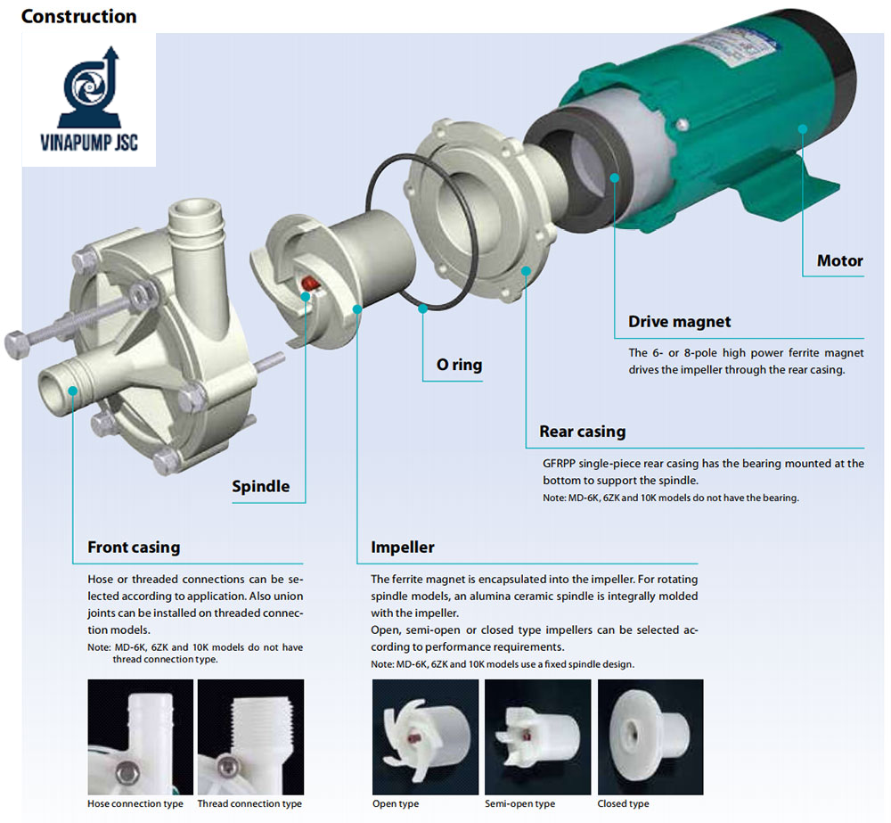 Cánh bơm được đặt dưới đáy bơm, dòng đa tầng cánh thì xếp theo tầng liên tiếp, được vận hành bởi động cơ thông qua trục truyền động.