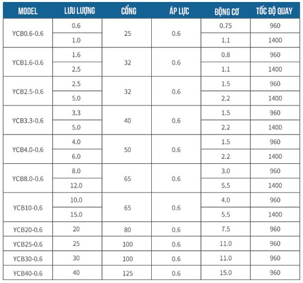 - – Đối với các tỉnh thành một hay nhiều sản phẩm bơm bánh răng YCB vui lòng liên hệ chúng tôi