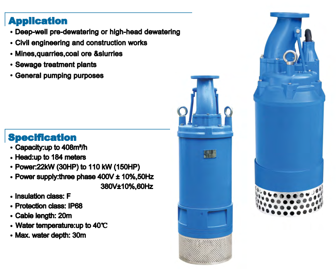 MÁY BƠM CHÌM THOÁT NƯỚC (LƯU LƯỢNG + CỘT ÁP CAO)