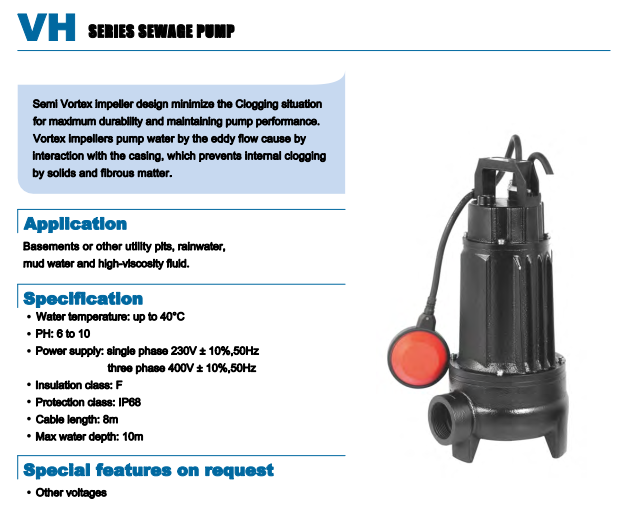 Bơm chìm nước thải MEUDY Model VH80/40M