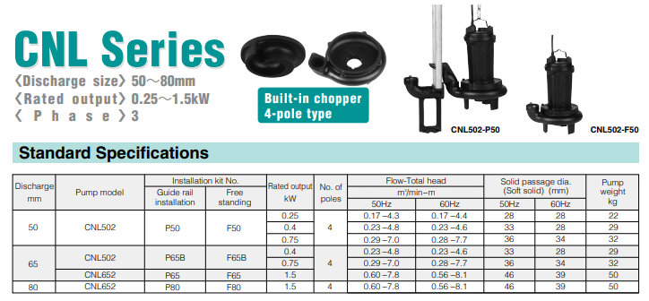 Bơm chìm nước thải SHINMAYWA Model CNL502 0.4 kW 380V Cỡ cổng 50mm
