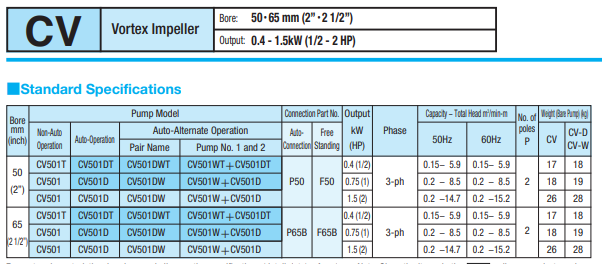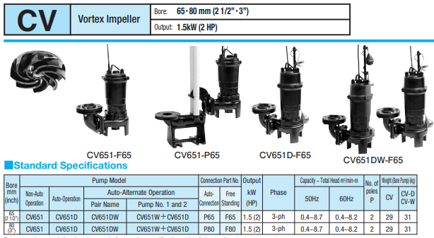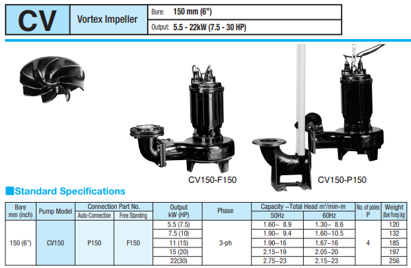 Bơm chìm nước thải SHINMAYWA Model CV501T 0.4 kW 380V Cỡ cổng 50mm