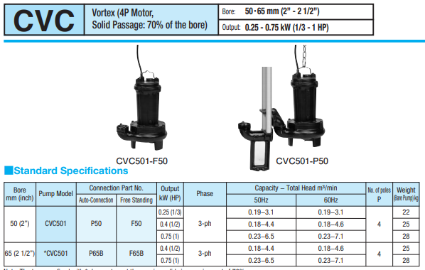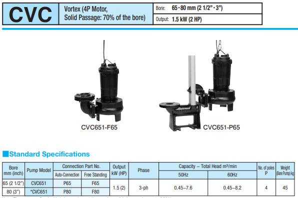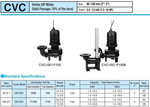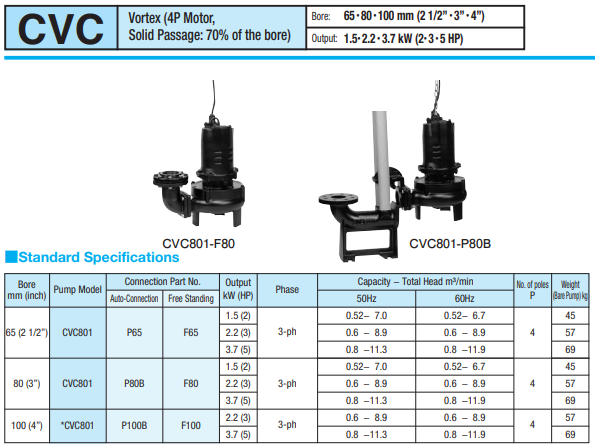 Bơm chìm nước thải SHINMAYWA Model CVC801 3.7 kW 380V Cỡ cổng 100mm