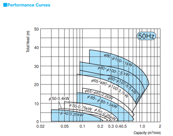 Vật liệu cấu tạo: Vỏ bơm, cánh bơm bằng gang đúc (FC250)