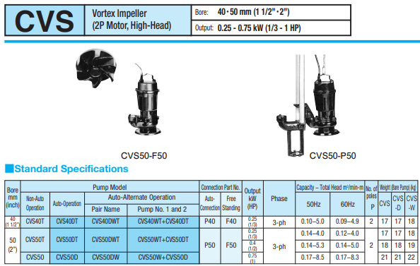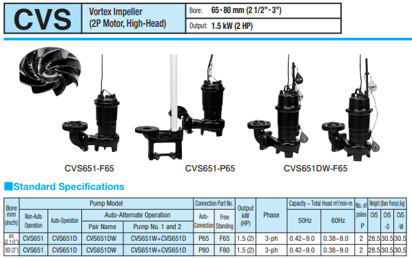 Bơm chìm nước thải SHINMAYWA Model CVS651 1.5 kW 380 Cỡ cổng 80mm