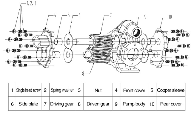 · Khả năng tạo ra áp suất xả cao 210 psi cho bơm dầu bánh răng KCB, 362,5 psi cho bơm chuyển dầu bánh răng 2CY.