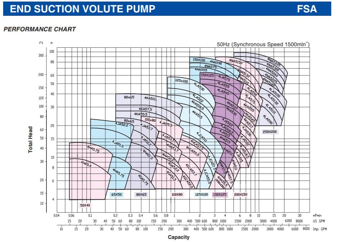 3. Thông số kỹ thuật bơm ly tâm Ebara FSA