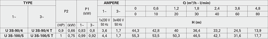 Các thông số về lưu lượng và cột áp và cách lắp đặt của Bơm biến tần Pentax U3S-100/5T xin tham khảo tại biểu đồ đặc tính và cách lắp đặt của bơm cơ sở là Pentax U3S-100/5T