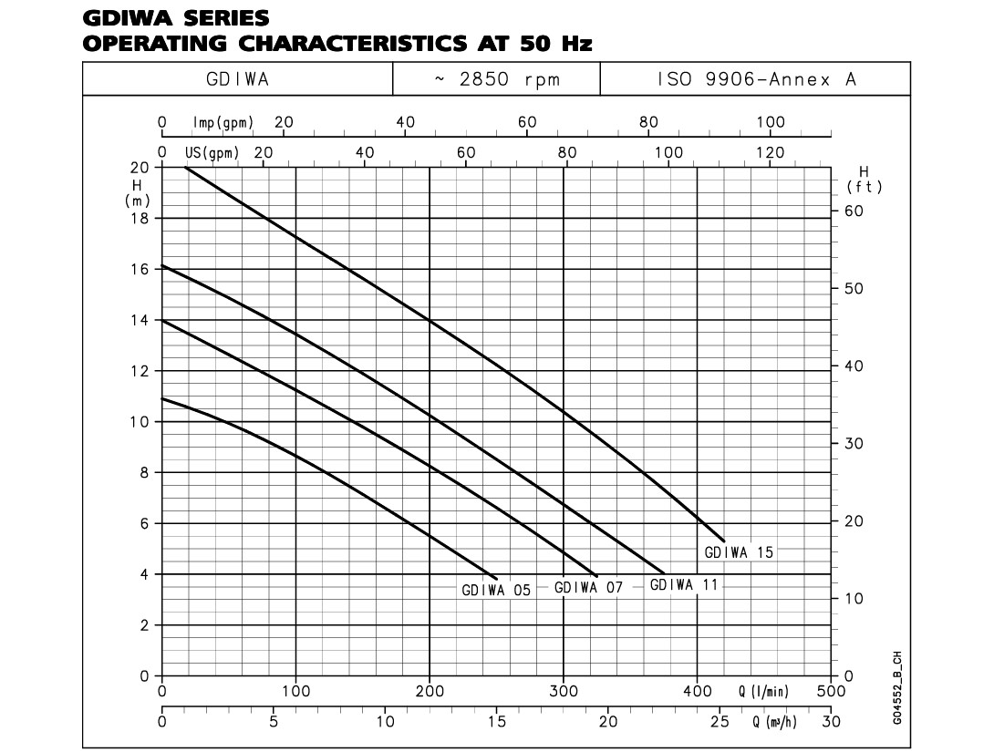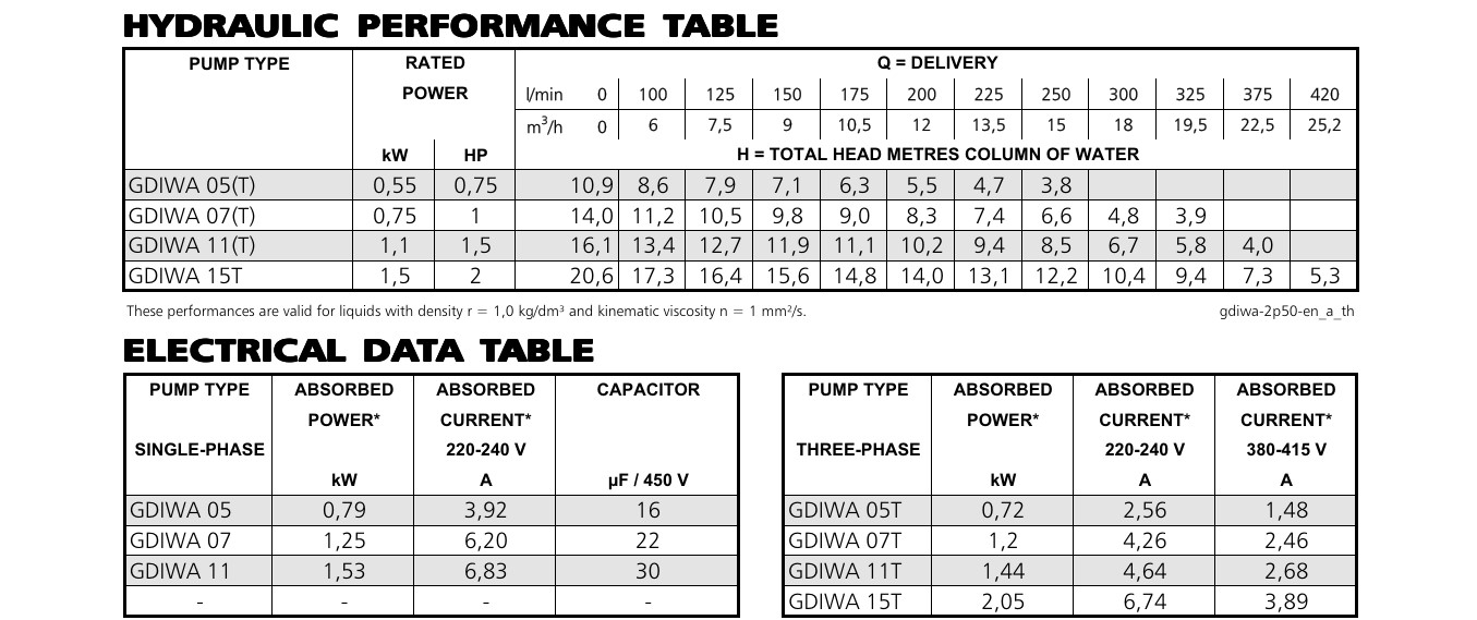 • GDIWA 15 (1.5 kW): Hiệu suất cao nhất cho các yêu cầu cột áp lớn.