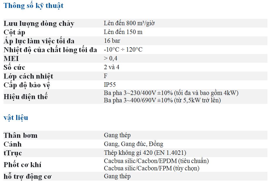 Các động cơ có sẵn với 2 hoặc 4 cực, 50 Hz, với cấp hiệu suất IE3, với công suất từ 1,1 kW đến 90 kW, có thể kết hợp với bộ biến tần để đạt được mức tiết kiệm năng lượng cao hơn.