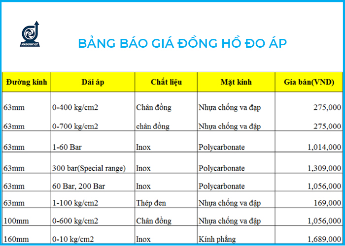 Đồng hồ đo áp suất nước giá bao nhiêu là câu hỏi nhiều người quan tâm. Dưới đây là bảng báo giá sơ bộ các dòng sản phẩm. Liên hệ trực tiếp chúng tôi để nhận báo giá chi tiết.