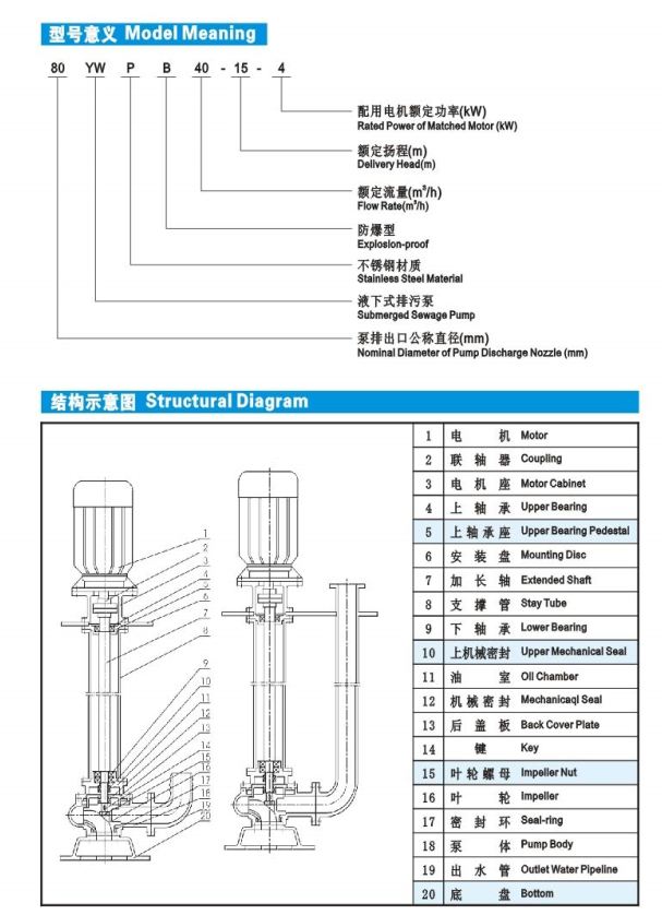 Bơm bán chìm YW-có thể bơm được các loại nước thải và hóa chất của chứa cặn và rác
