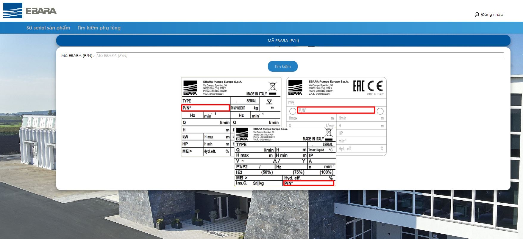 3. Kiểm tra số seri với Web của Hãng Ebara ( cách này với dòng xuất xứ Italy)