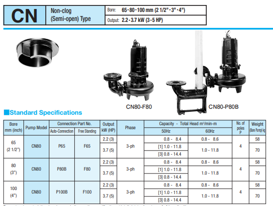 Bơm chìm nước thải Shimaywa Series CN là loại máy bơm chìm đa dạng về công suất và kích cỡ cổng hút xả, giúp ta có nhiều lựa chọn bơm phù hợp với hệ thống bơm: